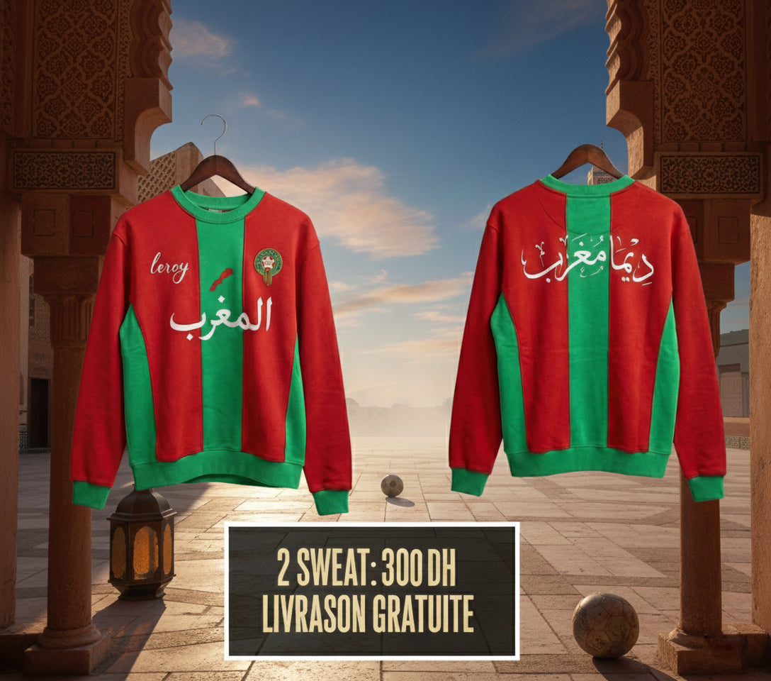 Arborez fiΓ¨rement lβidentitΓ© nationale avec ce sweatshirt exclusif aux couleurs emblΓ©matiques du Maroc. Un design audacieux qui fusionne tradition et modernitΓ©, pensΓ© pour ceux qui portent le Lion de l'Atlas dans le cΕur et le style dans le sang.